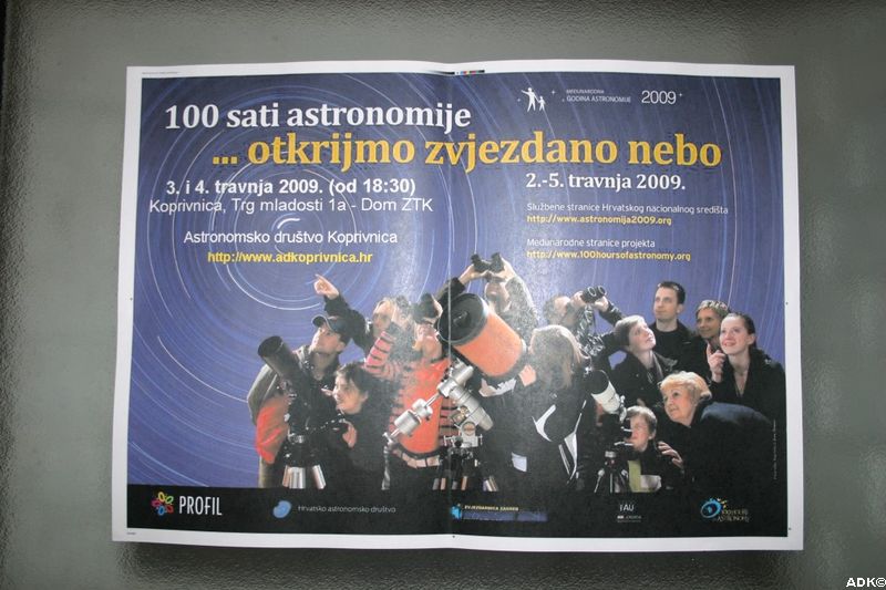 Kao što je bilo najavljeno Astronomsko društvo Koprivnica sudjelovalo je u realizaciji globalnog projekta “100 sati astronomije” kao dijela obilježavanja Međunarodne godine astronomije u Hrvatskoj.