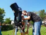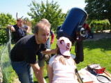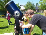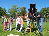 Članovi AD Koprivnica danas su održali promatranje Sunca s djecom iz koprivničkog Dječjeg vrtića Smiješak. Mališani su pokazali velik interes za astronomiju i brzo su ‘pohvatali’ kako treba gledati kroz teleskop, pravilno zaštićen odgovarajućim filterom. Na Suncu se vidjelo nekoliko pjegica koje su im bile jako zanimljive, a Dalibor Grubačević i Marko Posavec objasnili su im zašto Sunce izgleda bijelo, a ne žuto, i što su te pjege zapravo. Vidio se i Mjesec u fazi posljednje četvrti, ali s obzirom na jaku dnevnu svjetlost on nije izgledao atraktivno. Na promatranju su nam se pridružili i novinari, pa očekujemo i objavu ove aktivnosti u lokalnim medijima.