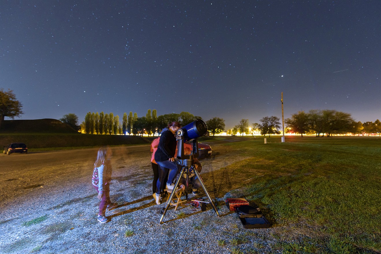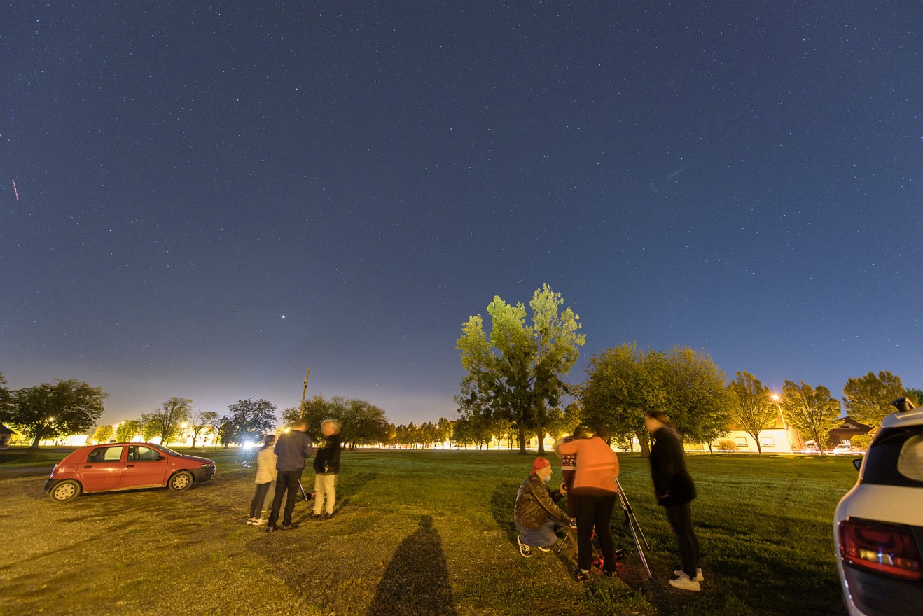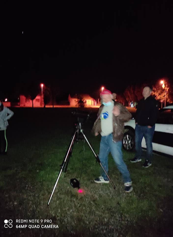 Promatrali smo pomoću teleskopa Skywatcher Mak 102/1300 i Meade LX 200 Classic 10″ F/10. Još neke objekte (Andromedina galaksija M31 i Plejade M45) pokazali smo posjetiteljima pomoću dvogleda.
