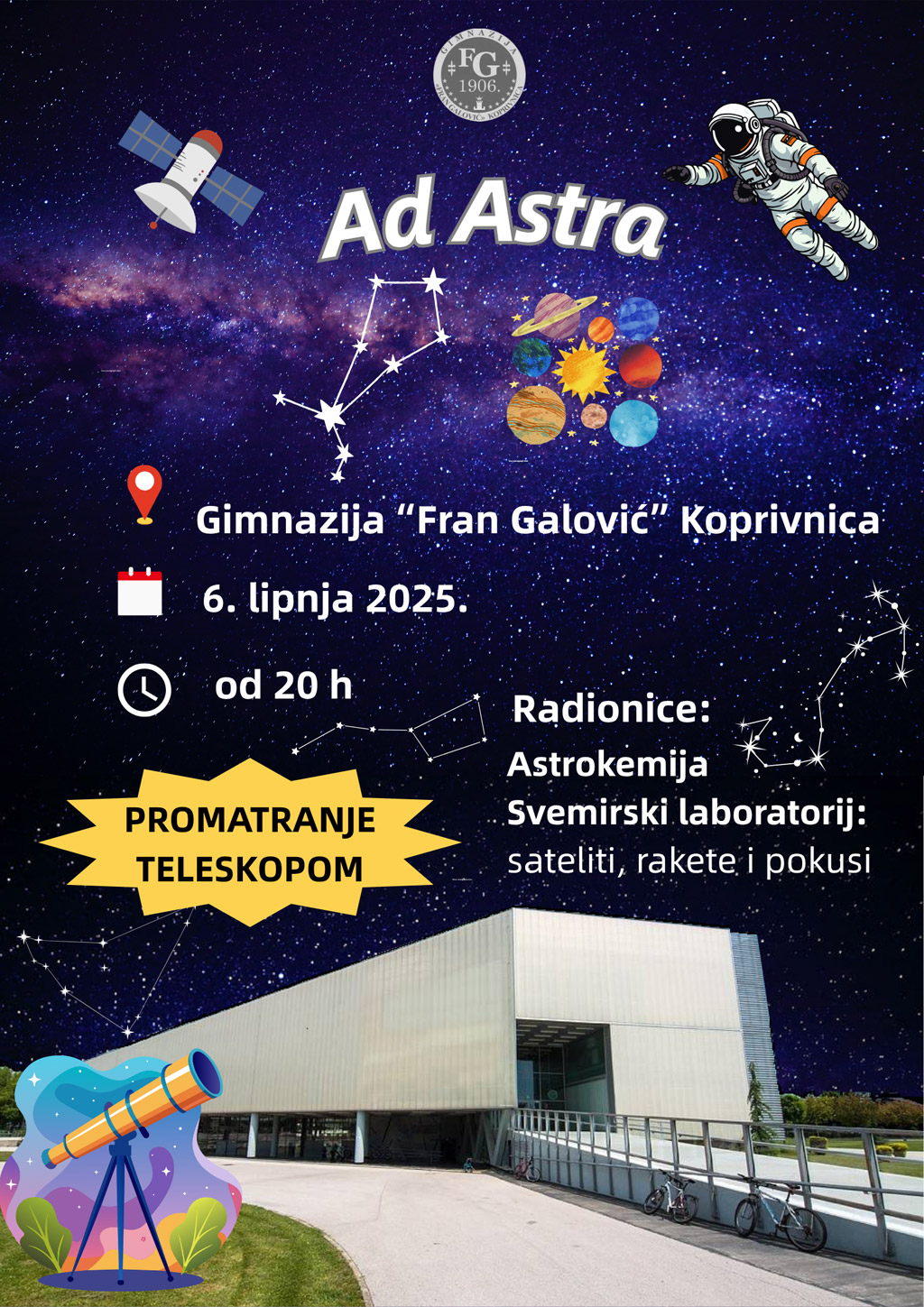 Astronomsko društvo Koprivnica i prijatelji održat će dvije važne aktivnosti u Gimnaziji “Fran Galović” Koprivnica u petak, 6. lipnja.