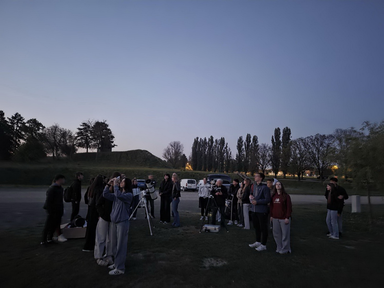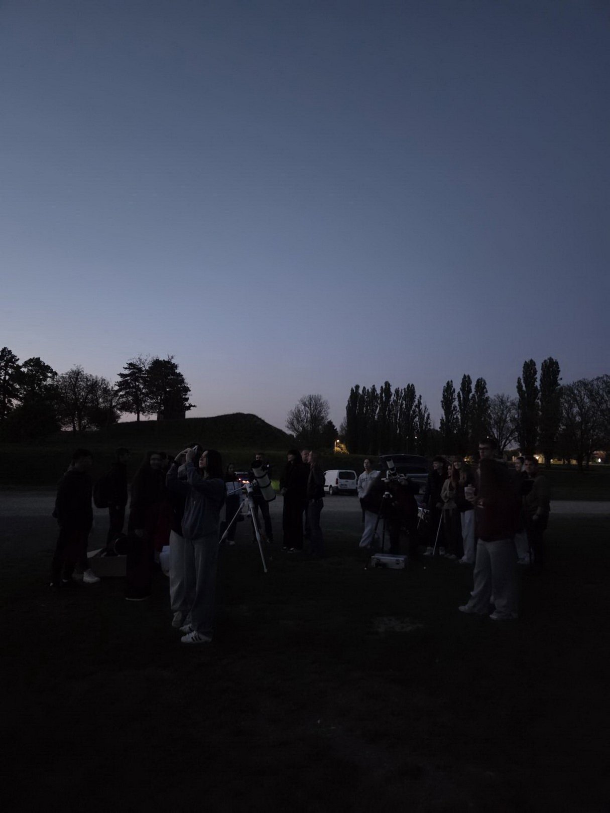 Nakon teorijskog dijela uslijedio je najuzbudljiviji trenutak večeri — praktično promatranje. Vrijeme je poslužilo, pa su sudionici mogli jasno vidjeti: